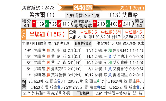 赛前数据