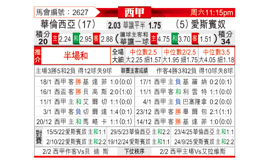 赛前数据
