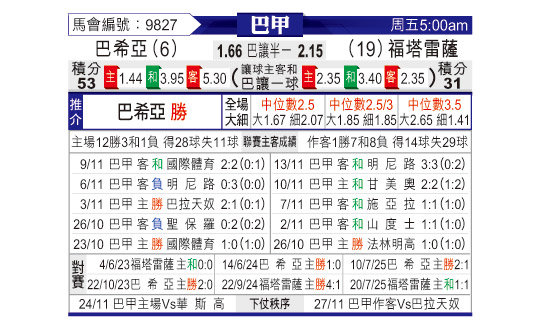 赛前数据